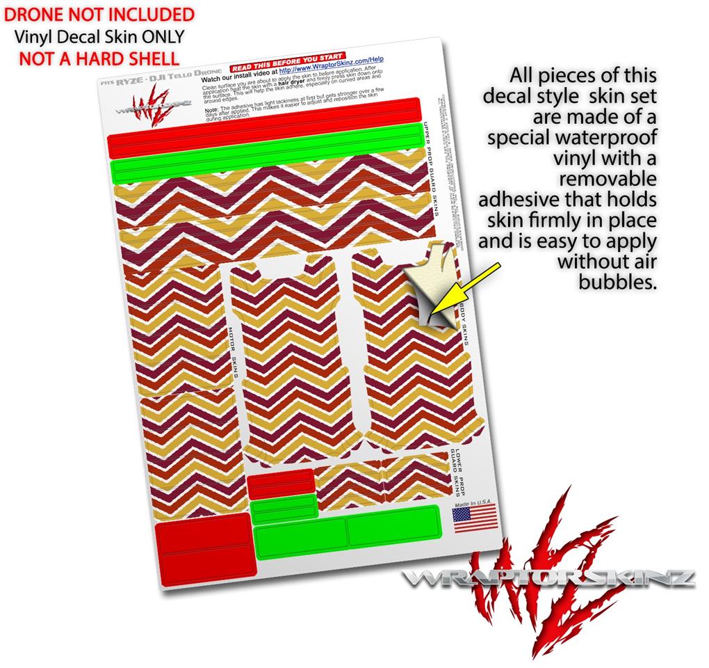 Skin Decal Wrap 2 Pack for DJI Ryze Tello Drone Zig Zag Yellow Burgundy Orange DRONE NOT INCLUDED