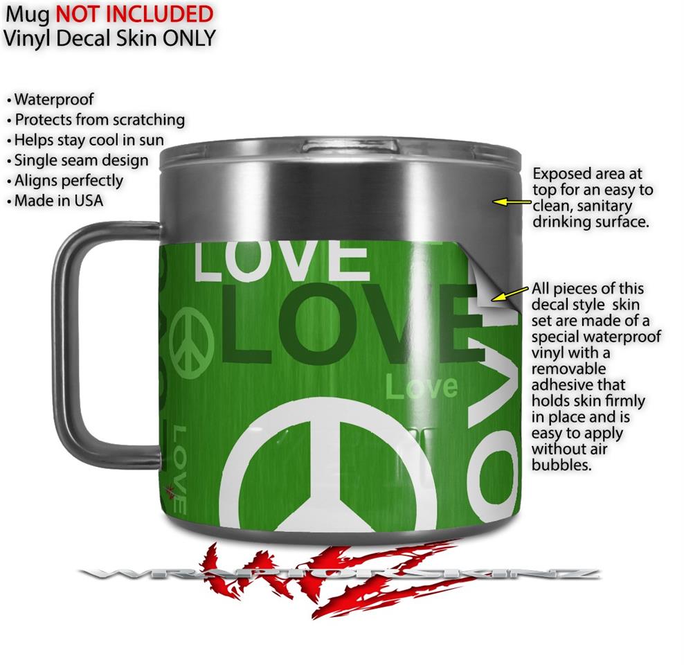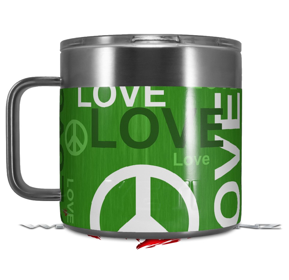 Skin Decal Wrap for Yeti Coffee Mug 14oz Love and Peace Green - 14 oz CUP NOT INCLUDED by WraptorSkinz