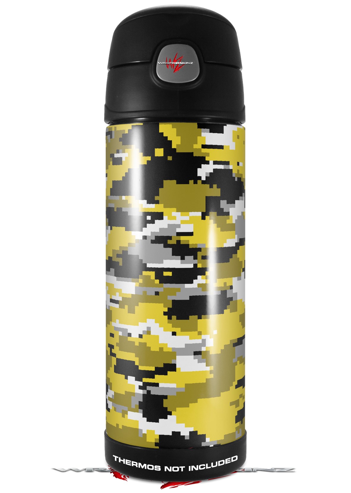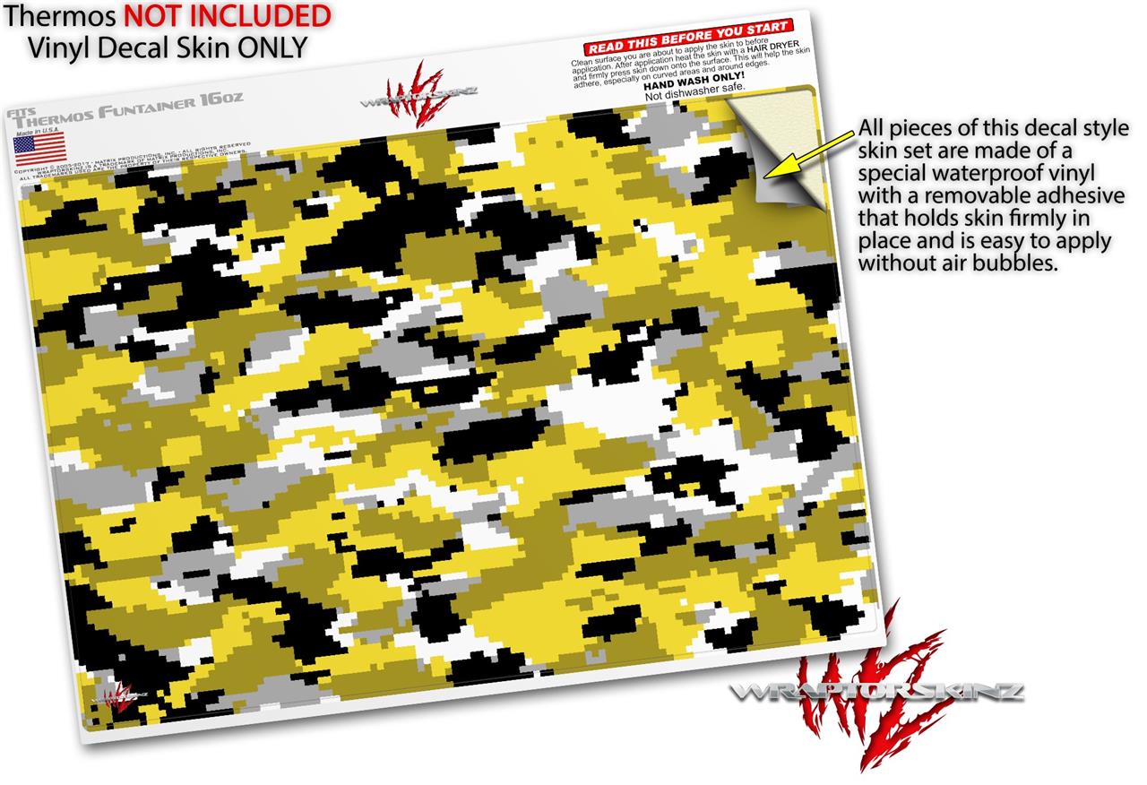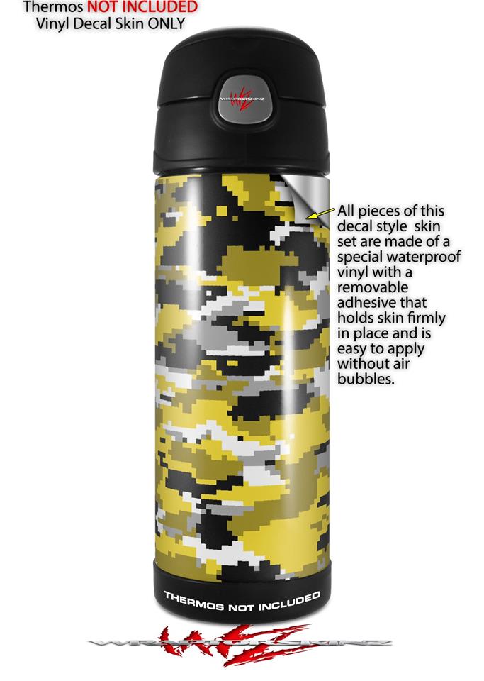 Skin Decal Wrap for Thermos Funtainer 16oz Bottle WraptorCamo Digital Camo Yellow (BOTTLE NOT INCLUDED) by WraptorSkinz