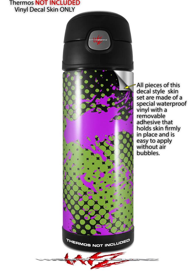 Skin Decal Wrap for Thermos Funtainer 16oz Bottle Halftone Splatter Hot Pink Green (BOTTLE NOT INCLUDED) by WraptorSkinz