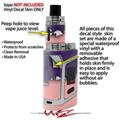 WraptorSkinz® skin wraps are printed using superb photo quality designs and vibrant colors printed with special fade resistant inks that last even in direct sun for years. WraptorSkinz are a composite of two layers of commercial grade materials. The bottom layer is a soft, flexible vinyl with a special removable adhesive that is easily positioned, applied without air bubbles. Next we print the bottom layer with UV protected, fade resistant inks that deliver superb photo quality designs in vibrant colors. Finally we bond a professional grade laminate over the entire skin adding a glossy protective finish. This product is not affiliated with or endorsed by the Smok brand.