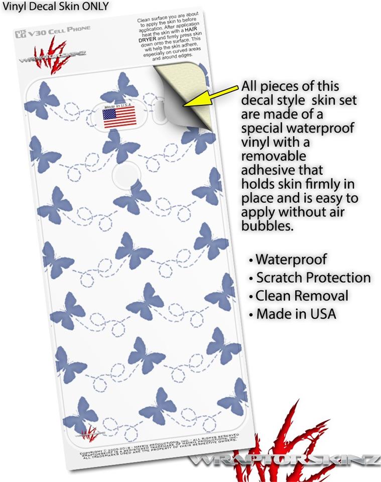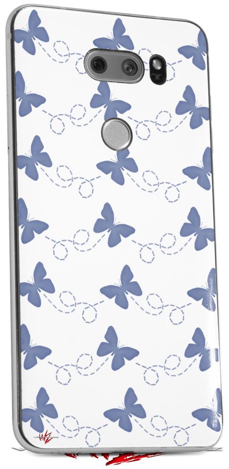 WraptorSkinz Skin Decal Wrap compatible with LG V30 Pastel Butterflies Blue on White