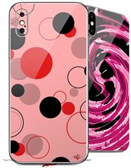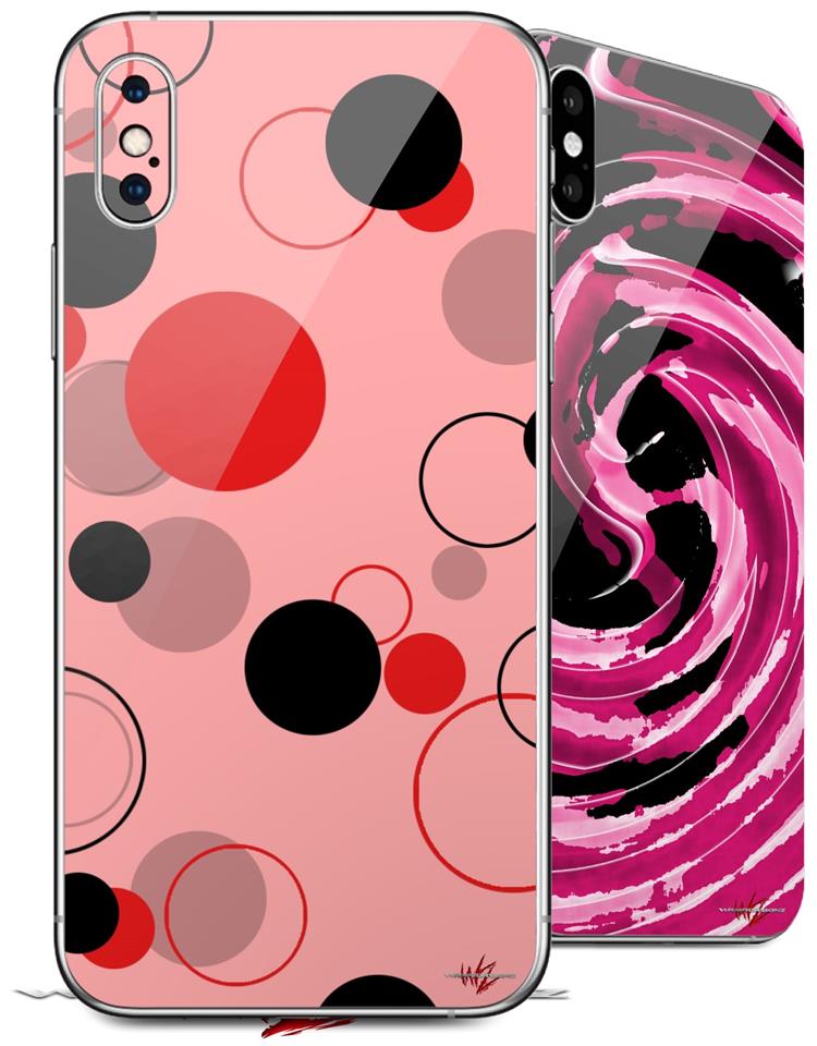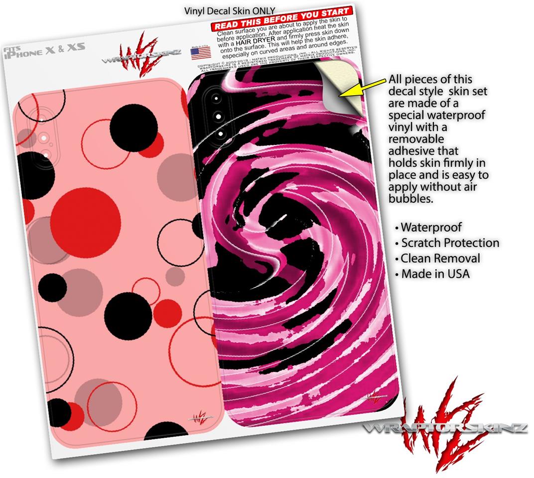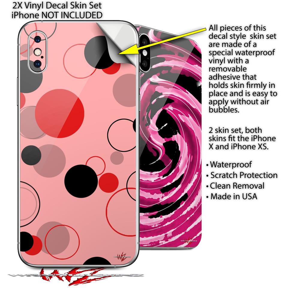 2 Decal style Skin Wraps set compatible with Apple iPhone X and XS Lots of Dots Red on Pink