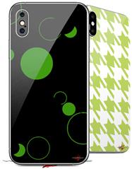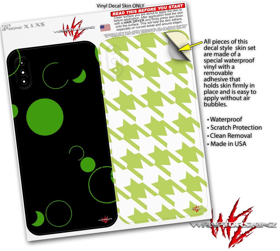 2 Decal style Skin Wraps set compatible with Apple iPhone X and XS Lots of Dots Green on Black