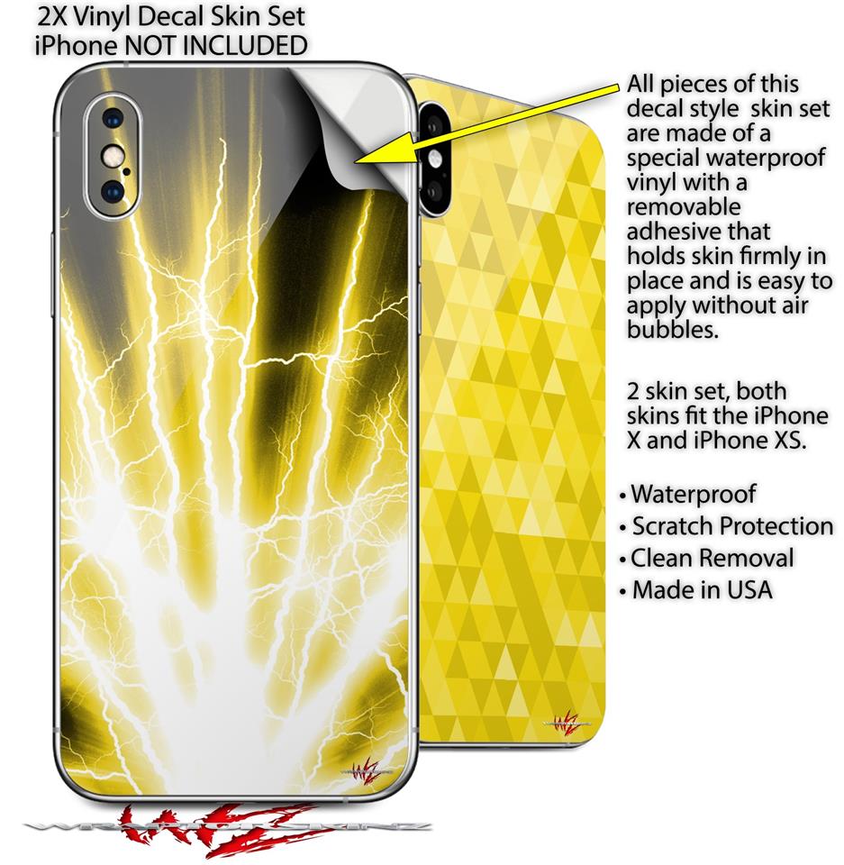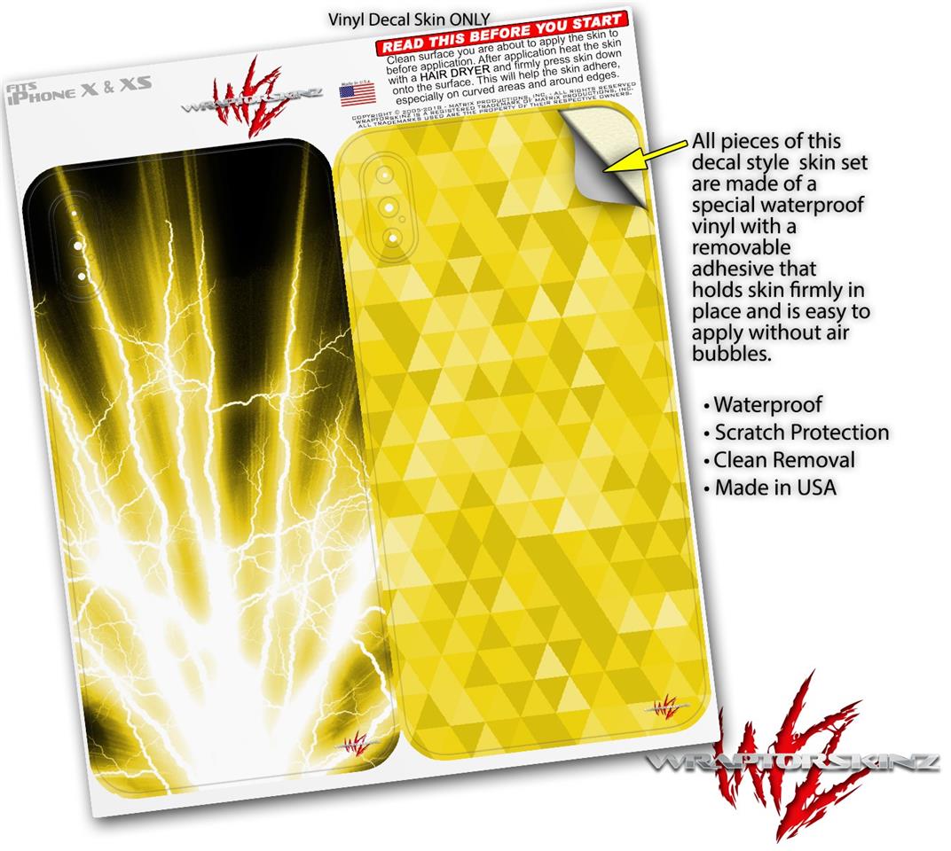 2 Decal style Skin Wraps set compatible with Apple iPhone X and XS Lightning Yellow