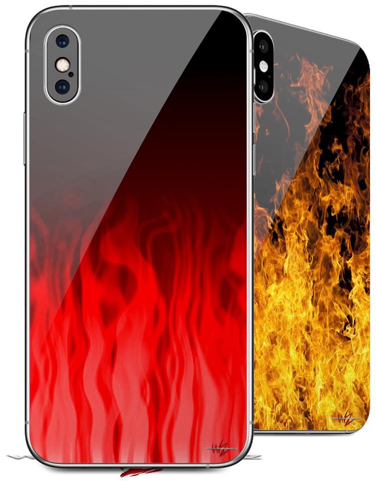 2 Decal style Skin Wraps set compatible with Apple iPhone X and XS Fire Red