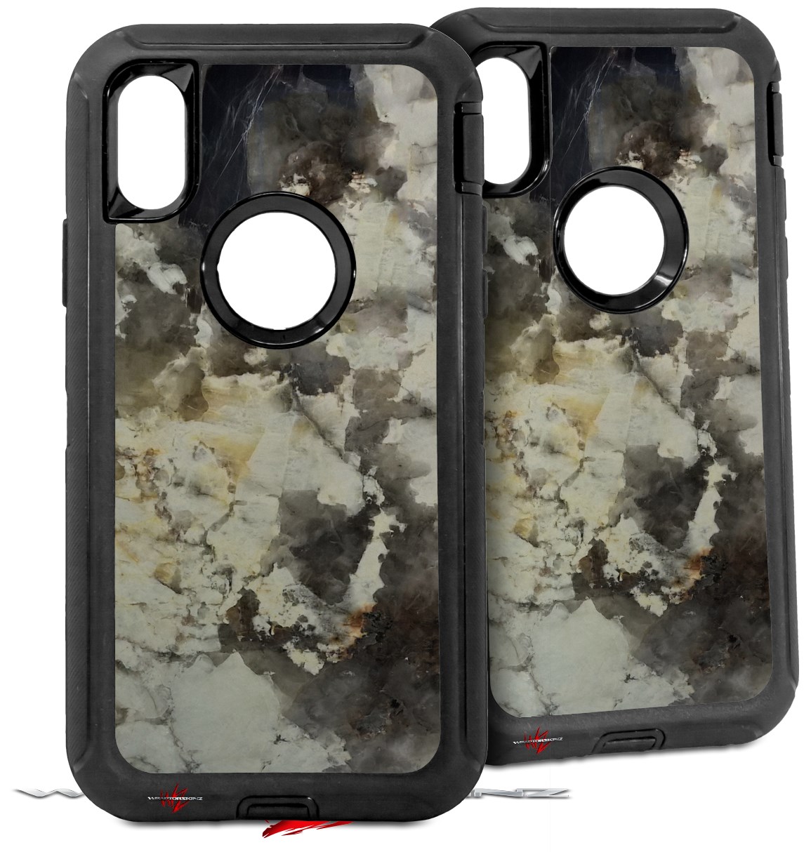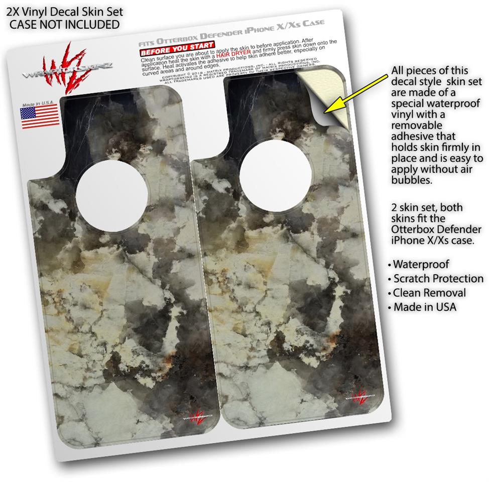2x Decal style Skin Wrap Set compatible with Otterbox Defender iPhone X and Xs Case - Marble Granite 04 (CASE NOT INCLUDED)