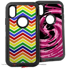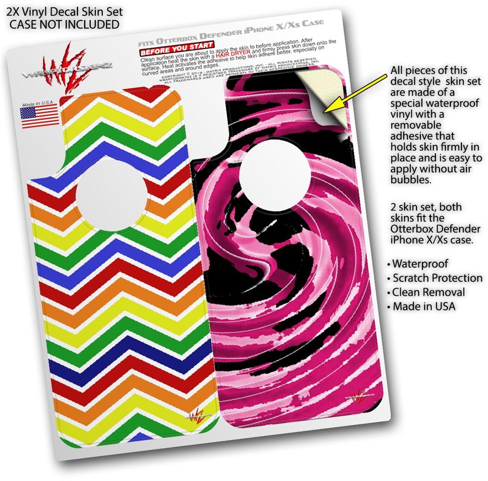 2x Decal style Skin Wrap Set compatible with Otterbox Defender iPhone X and Xs Case - Zig Zag Rainbow (CASE NOT INCLUDED)