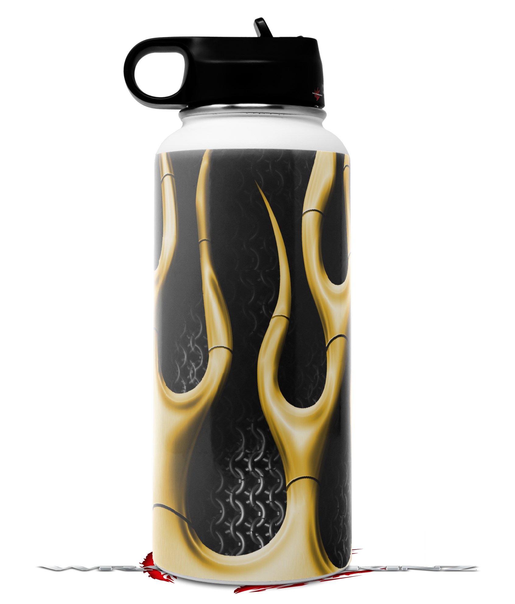 Skin Wrap Decal compatible with Hydro Flask Wide Mouth Bottle 32oz Metal Flames Yellow (BOTTLE NOT INCLUDED)
