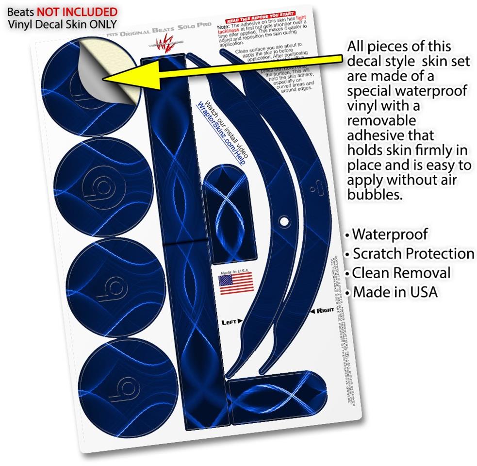 This product is in no way affiliated with or endorsed by Apple or Beats brand products. WraptorSkinz® skin wraps work with the Original Beats Solo Pro version 1 headphones. Printed using superb photo quality designs and vibrant colors printed with special fade resistant inks that last even in direct sun for years. WraptorSkinz are a composite of two layers of commercial grade materials. The bottom layer is a soft, flexible vinyl with a special removable adhesive that is easily positioned, applied without air bubbles. Next, we print the bottom layer with UV protected, fade resistant inks that deliver superb photo quality designs in vibrant colors. Finally, we bond a professional grade laminate over the entire skin adding a glossy protective finish.