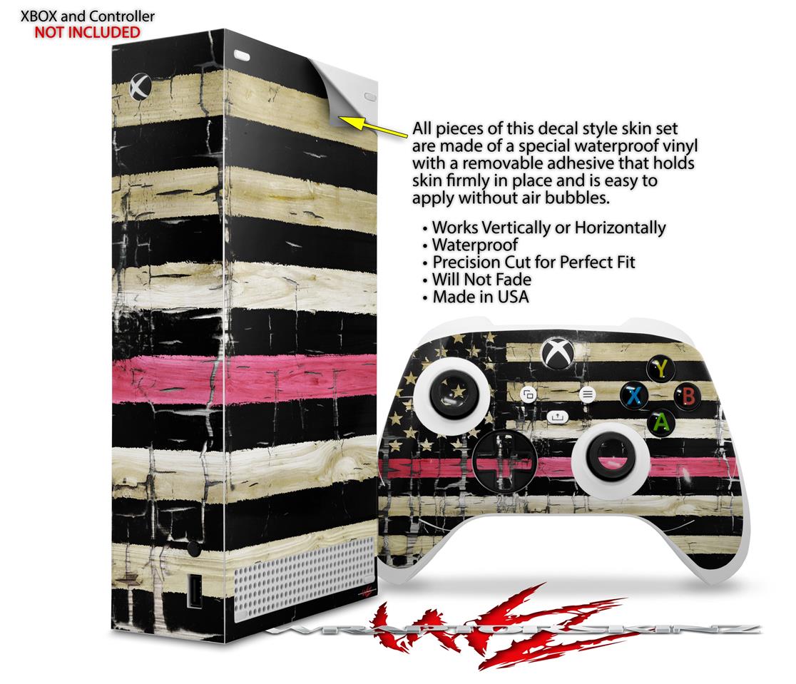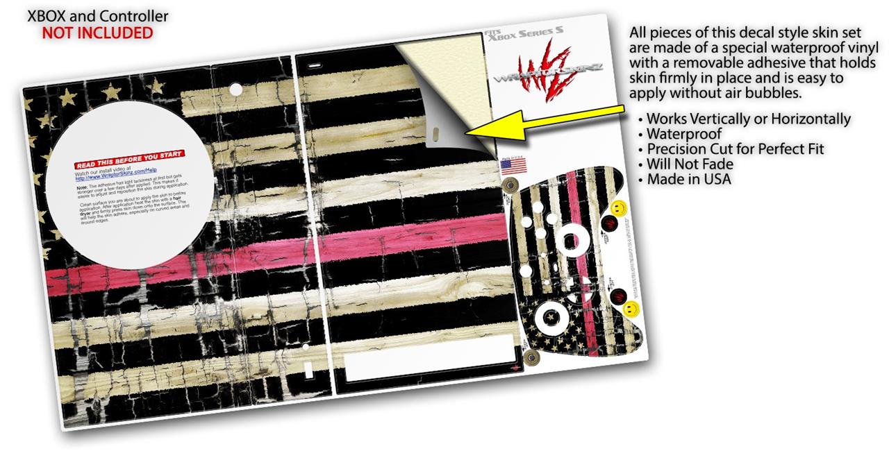 WraptorSkinz Skin Wrap compatible with the 2020 XBOX Series S Console and Controller Painted Faded and Cracked Pink Line USA American Flag (XBOX NOT INCLUDED)