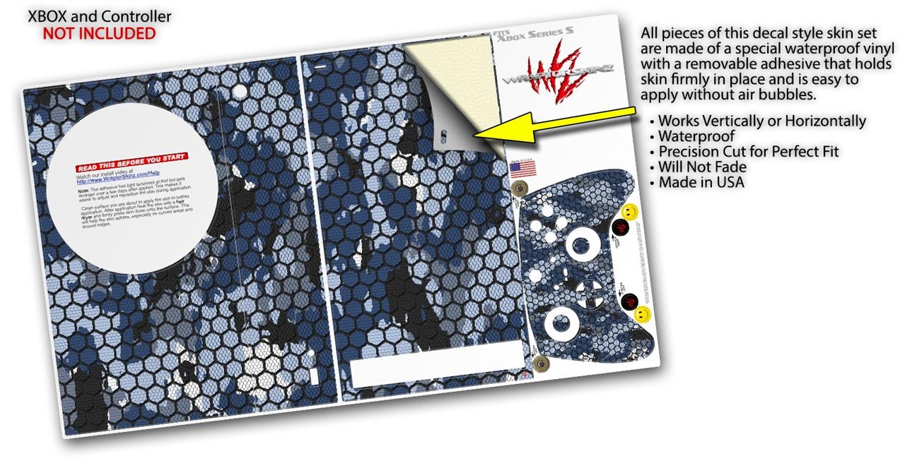 WraptorSkinz Skin Wrap compatible with the 2020 XBOX Series S Console and Controller HEX Mesh Camo 01 Blue (XBOX NOT INCLUDED)