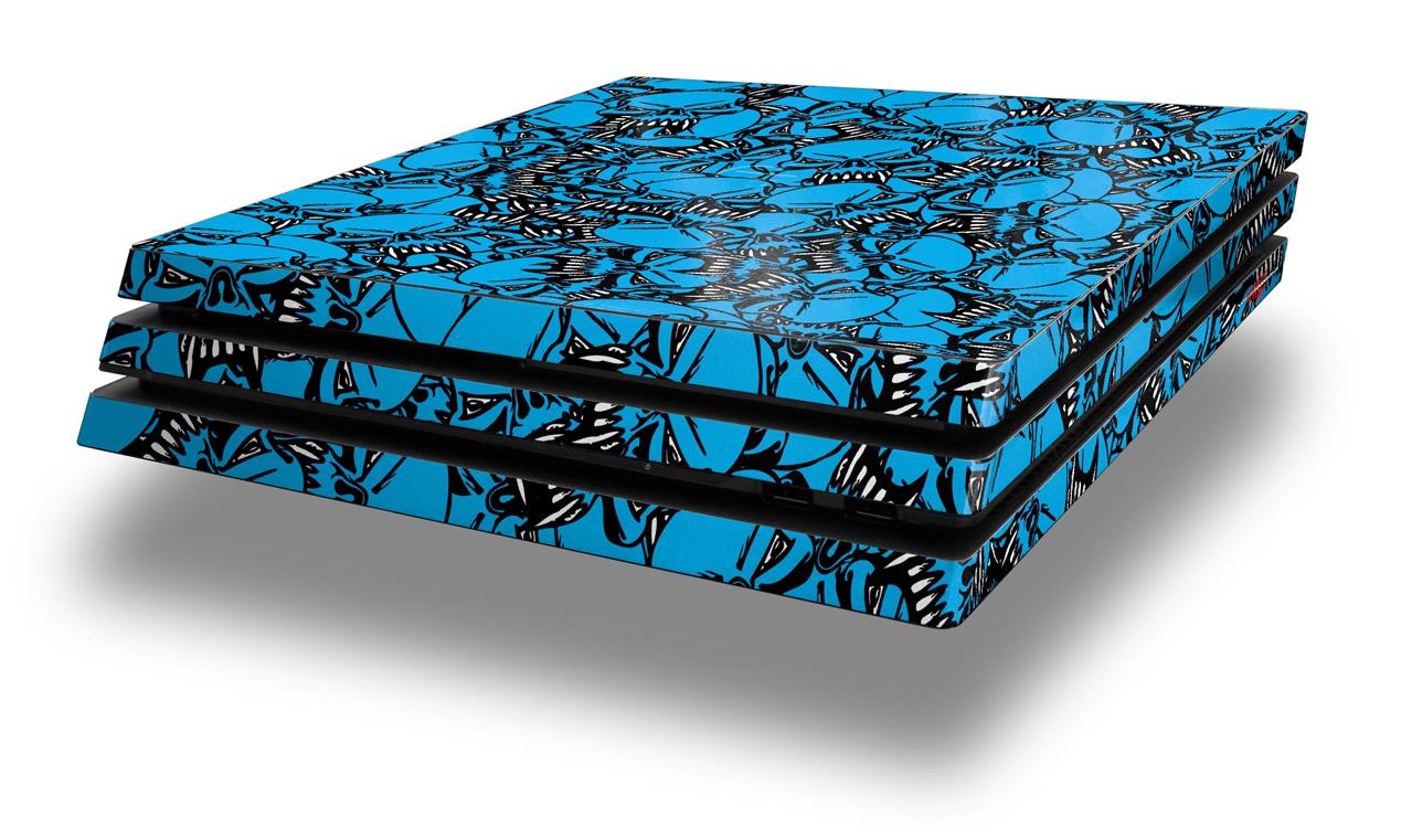 Vinyl Decal Skin Wrap compatible with Sony PlayStation 4 Pro Console Scattered Skulls Neon Blue (PS4 NOT INCLUDED)
