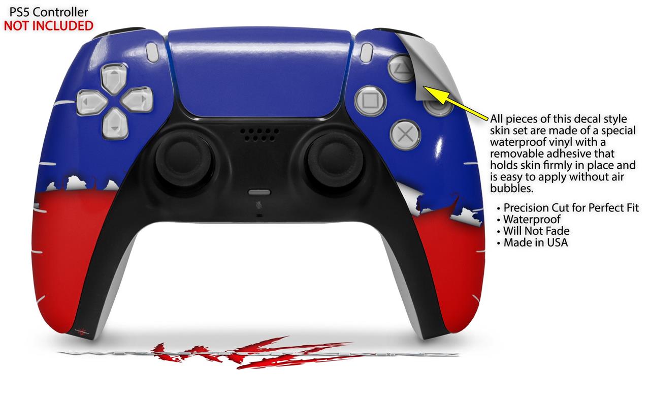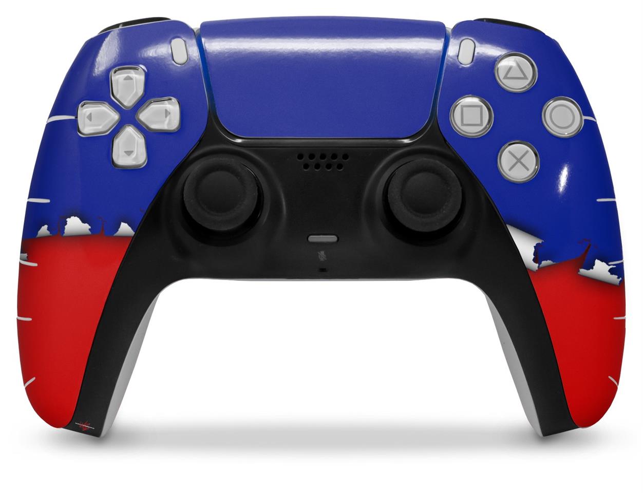 WraptorSkinz Skin Wrap compatible with the Sony PS5 DualSense Controller Ripped Colors Blue Red (CONTROLLER NOT INCLUDED)