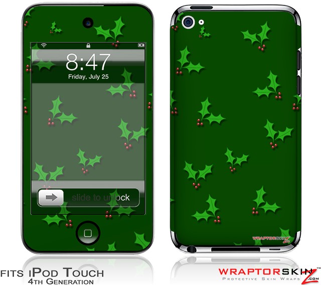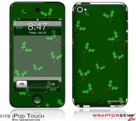 iPod Touch 4G Skin - Christmas Holly Leaves on Green