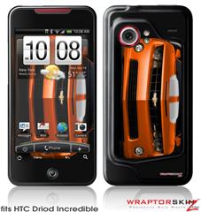 HTC Droid Incredible Skin - 2010 Chevy Camaro Orange - White Stripes on Black