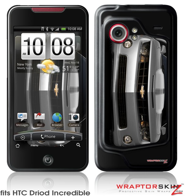 HTC Droid Incredible Skin - 2010 Chevy Camaro Silver - White Stripes on Black